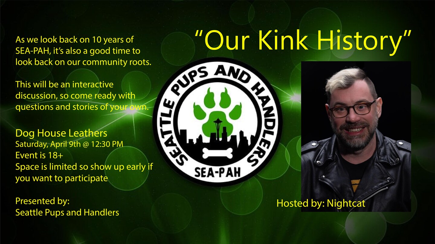 Join Nightcat (He/him/they) as they go through the years of Seattle's kink communities to see how our past shapes our future. This will be an interactive discussion, so come ready with questions and stories of your own.